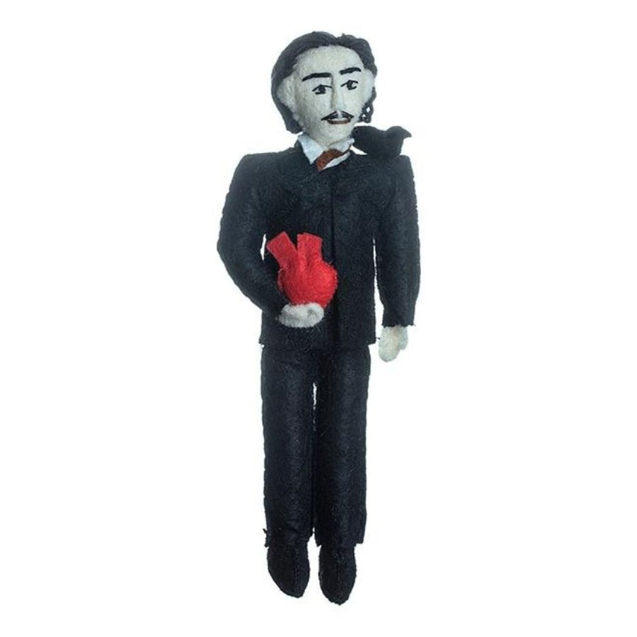 This haunting Edgar Allen Poe Christmas ornament is beautifully crafted from felt by women artisans in Kyrgyzstan. Add some Poe to your Christmas tree with this vibrant ornament complete with crow and beating heart. This ornament is an eye-catching addition to your holiday décor - perfect for those who want to add some literary personality to their tree!