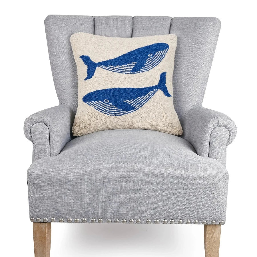 blue whales hooked pillow