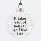 "It takes A Lot of Balls To Golf Like I Do" Glass Christmas Ornament